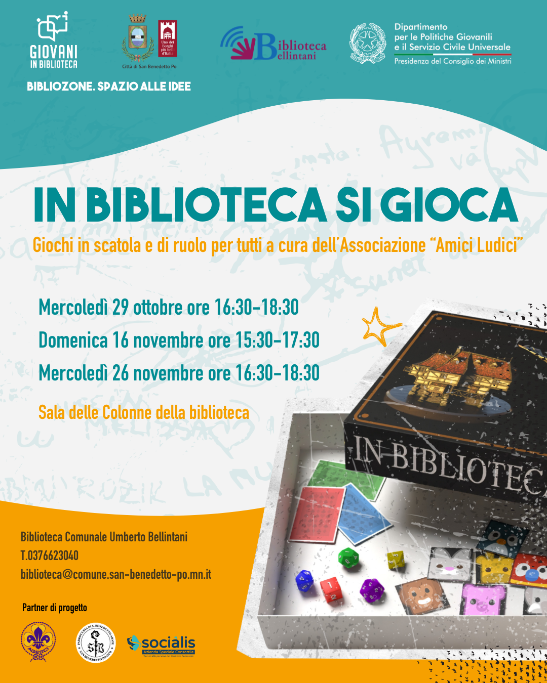 Nell'ambito del progetto "Bibliozone: spazio alle idee", ripartono gli appuntamenti con i giochi in scatola in biblioteca in compagnia degli operatori di Amici Ludici di Mantova.